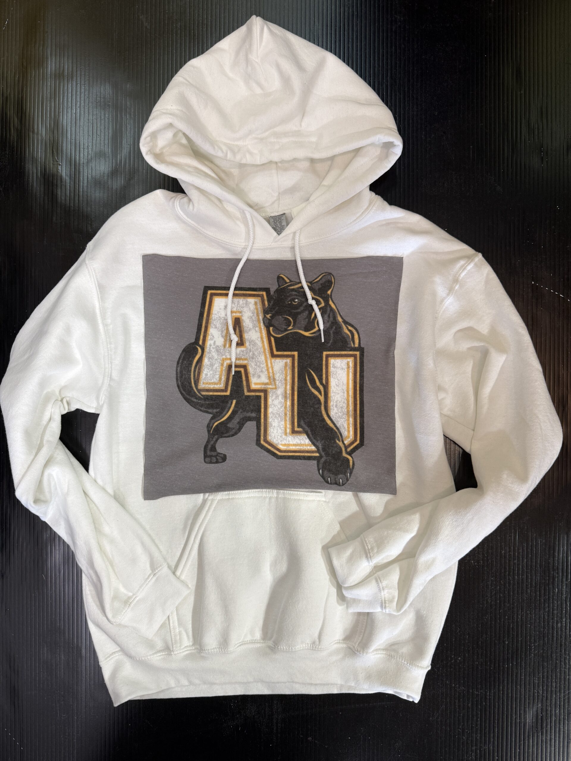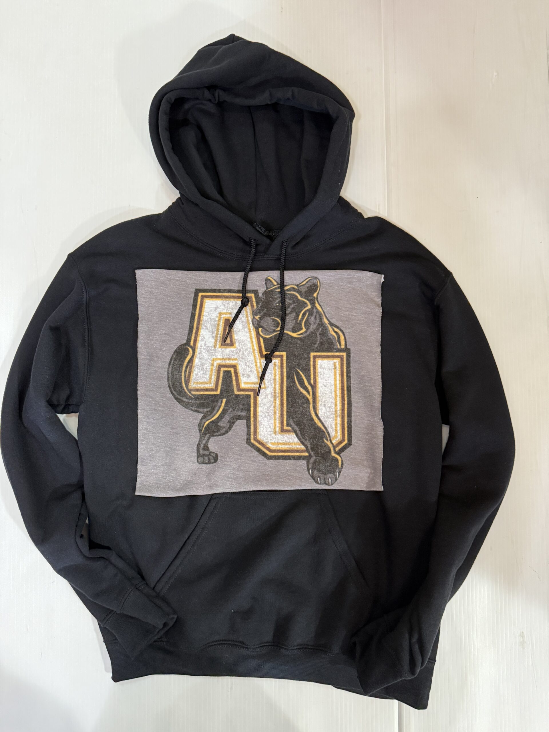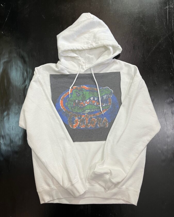 Soft hooded sweatshirt with vintage Tee Square sewn on the front. Banded bottom and kangaroo pocket. 50% cotton/ 50% polyester.