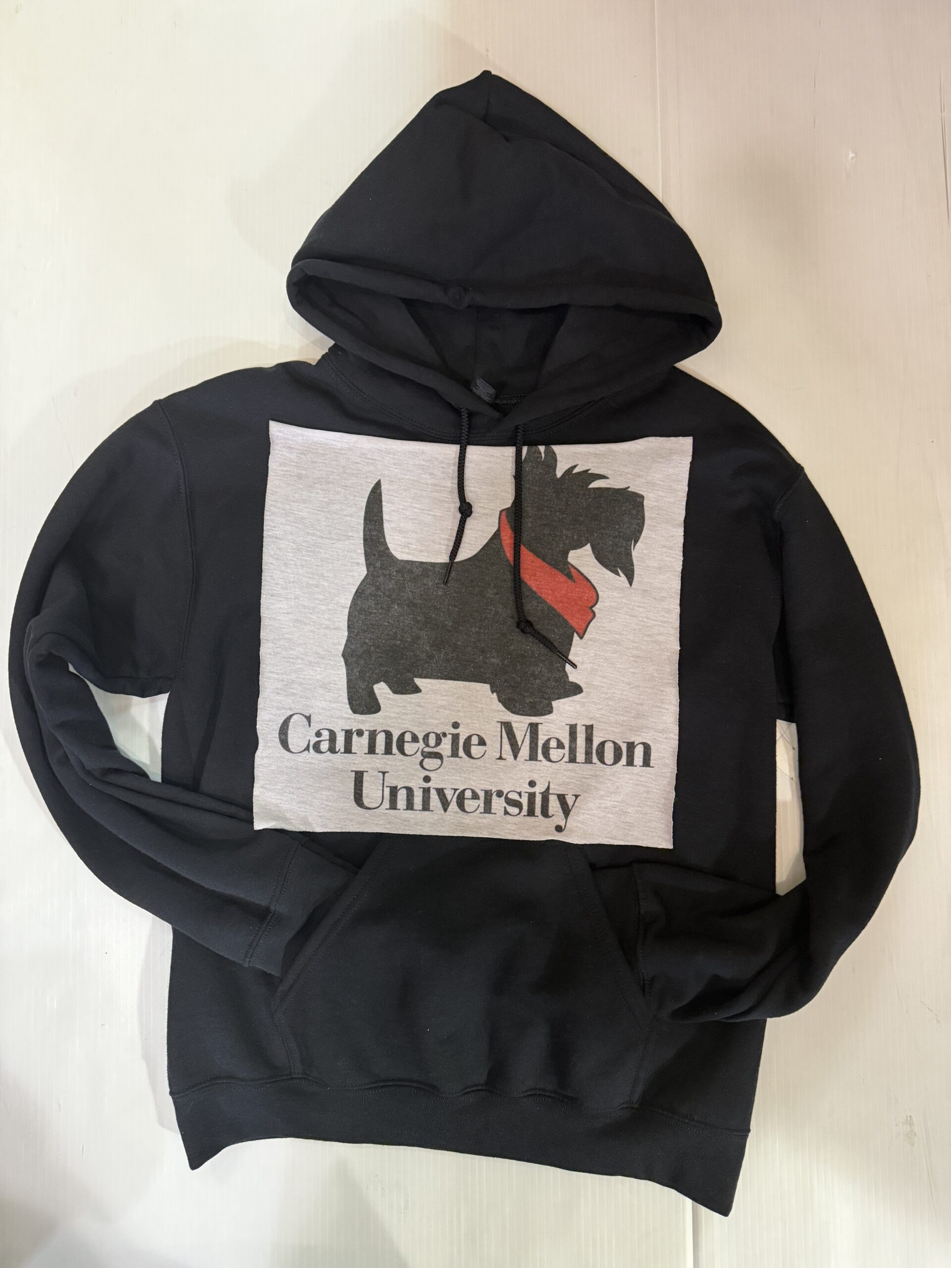 Soft hooded sweatshirt with vintage Tee Square sewn on the front. Banded bottom and kangaroo pocket. 50% cotton/ 50% polyester.