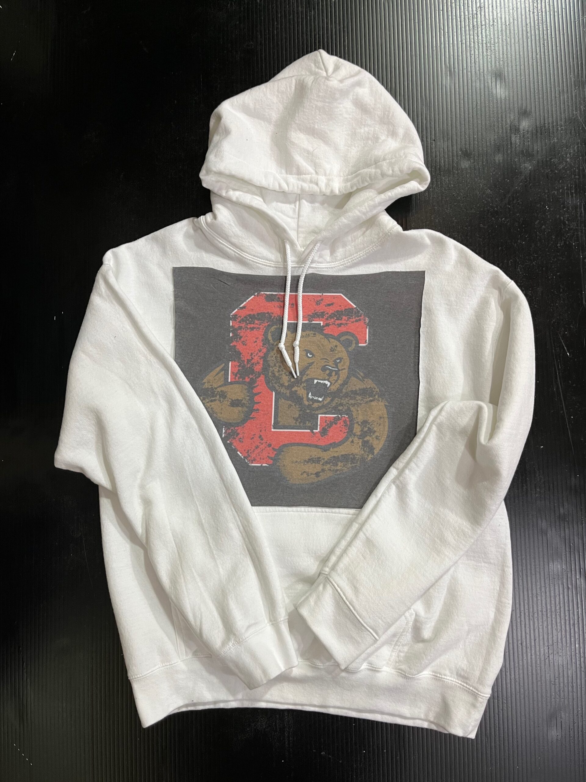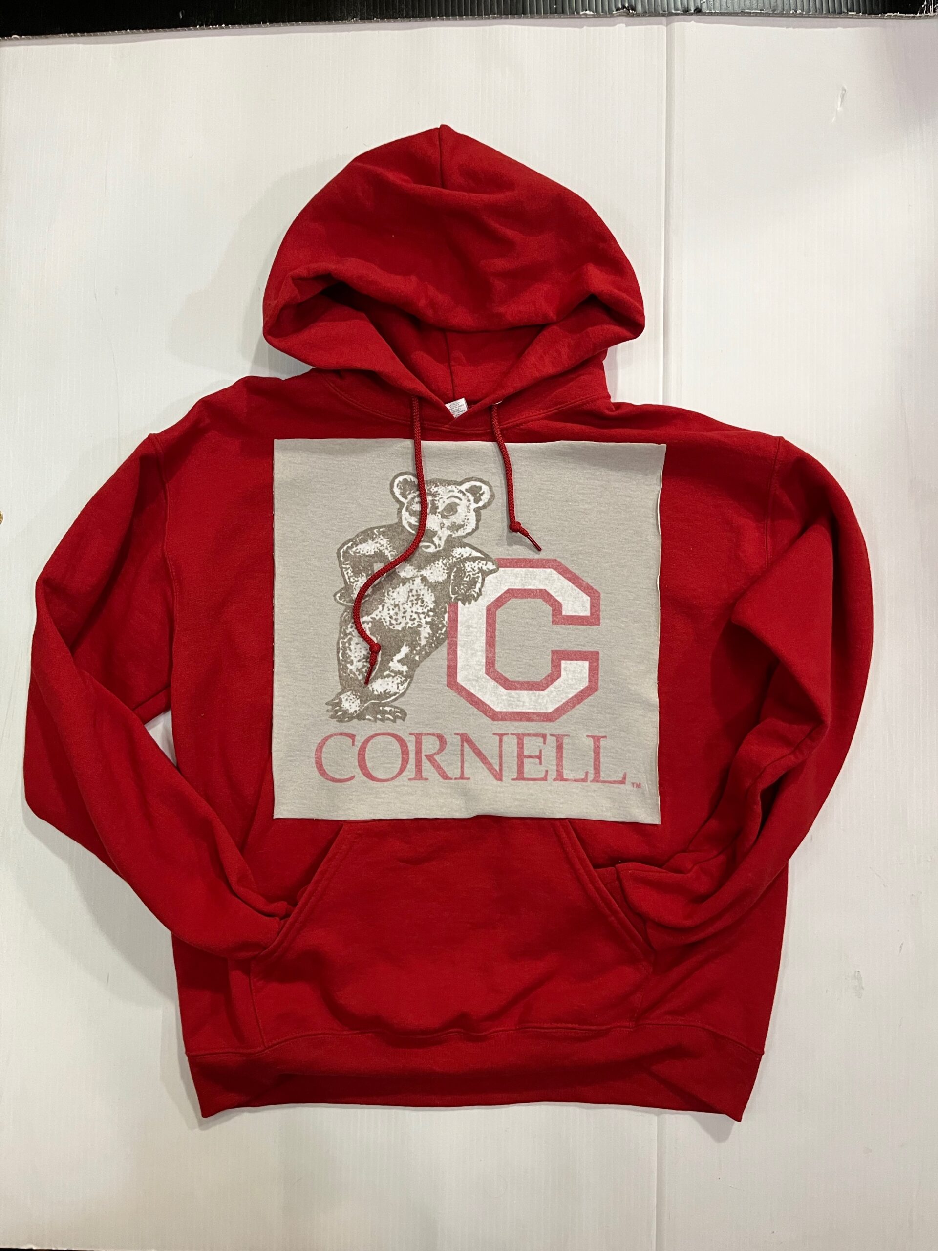 Soft hooded sweatshirt with vintage Tee Square sewn on the front. Banded bottom and kangaroo pocket. 50% cotton/ 50% polyester.