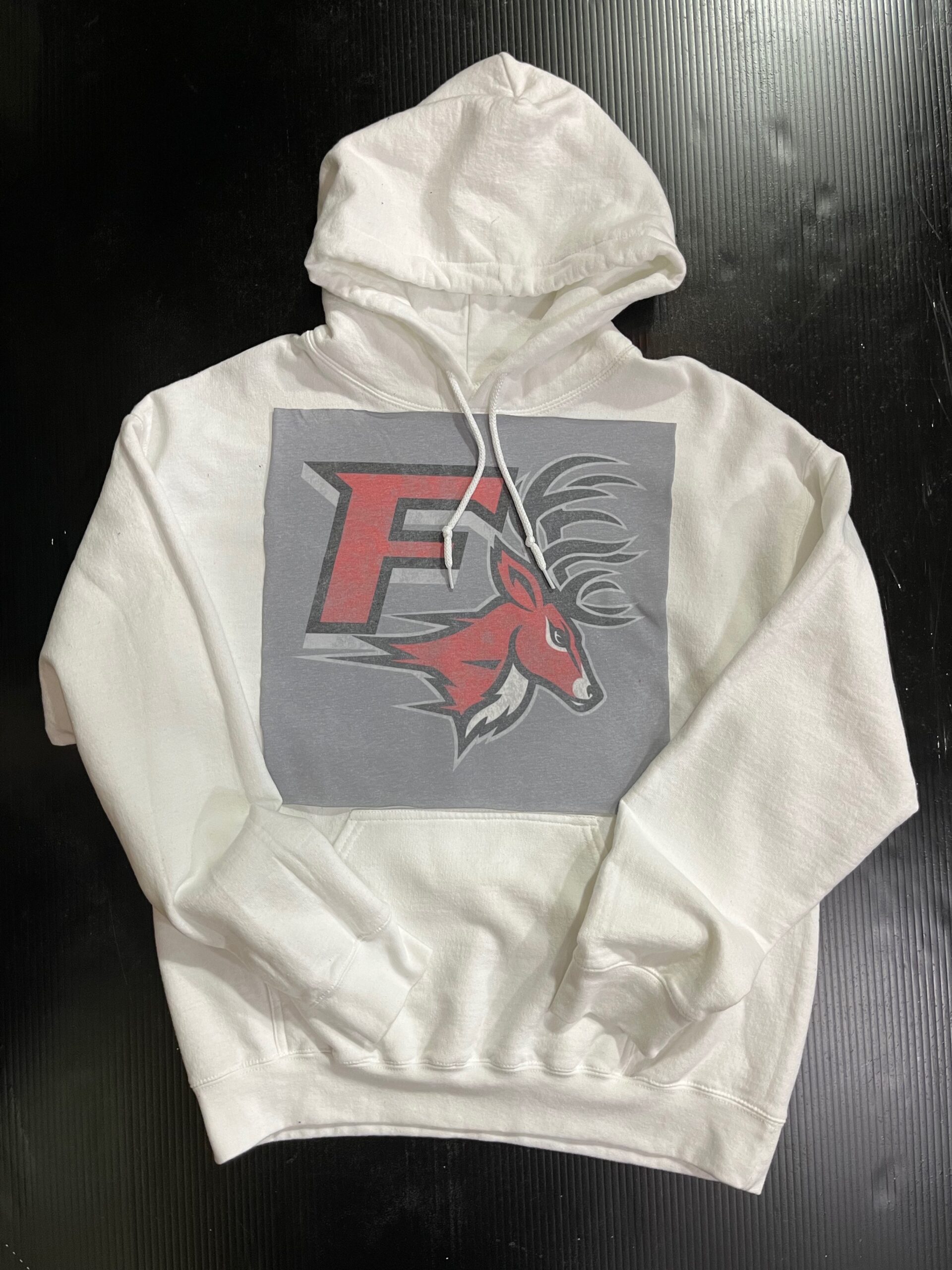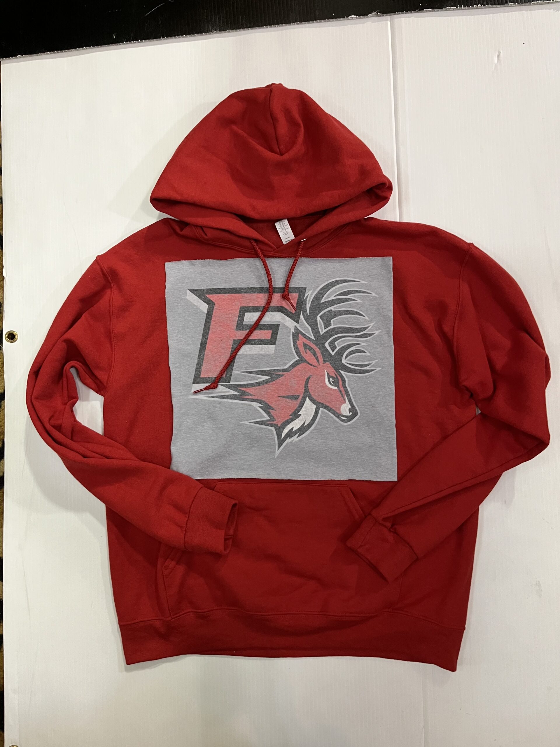 Soft hooded sweatshirt with vintage Tee Square sewn on the front. Banded bottom and kangaroo pocket. 50% cotton/ 50% polyester.