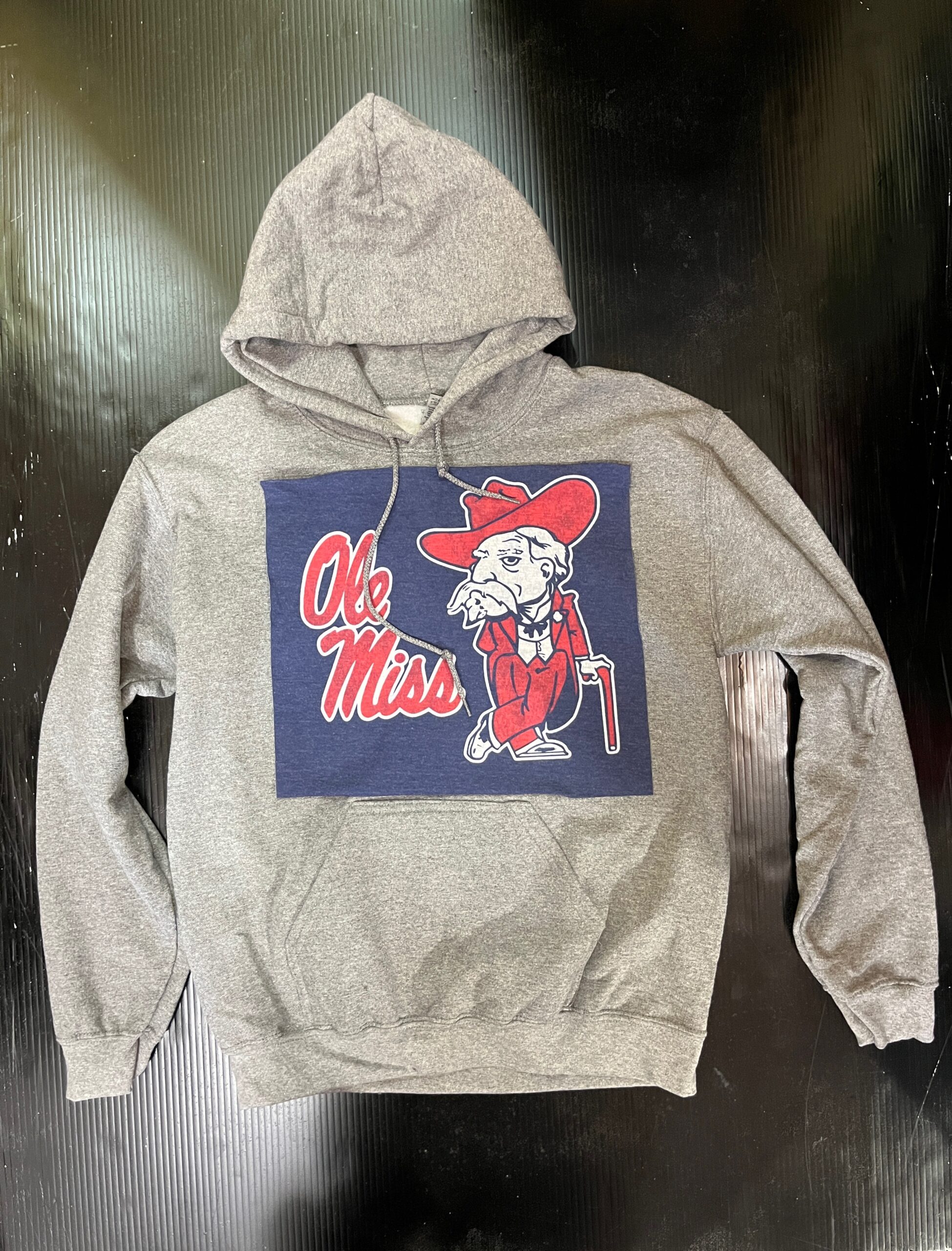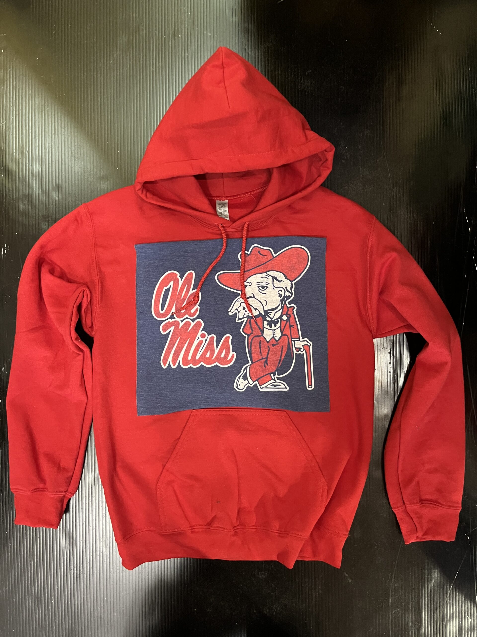 Soft hooded sweatshirt with vintage Tee Square sewn on the front. Banded bottom and kangaroo pocket. 50% cotton/ 50% polyester.