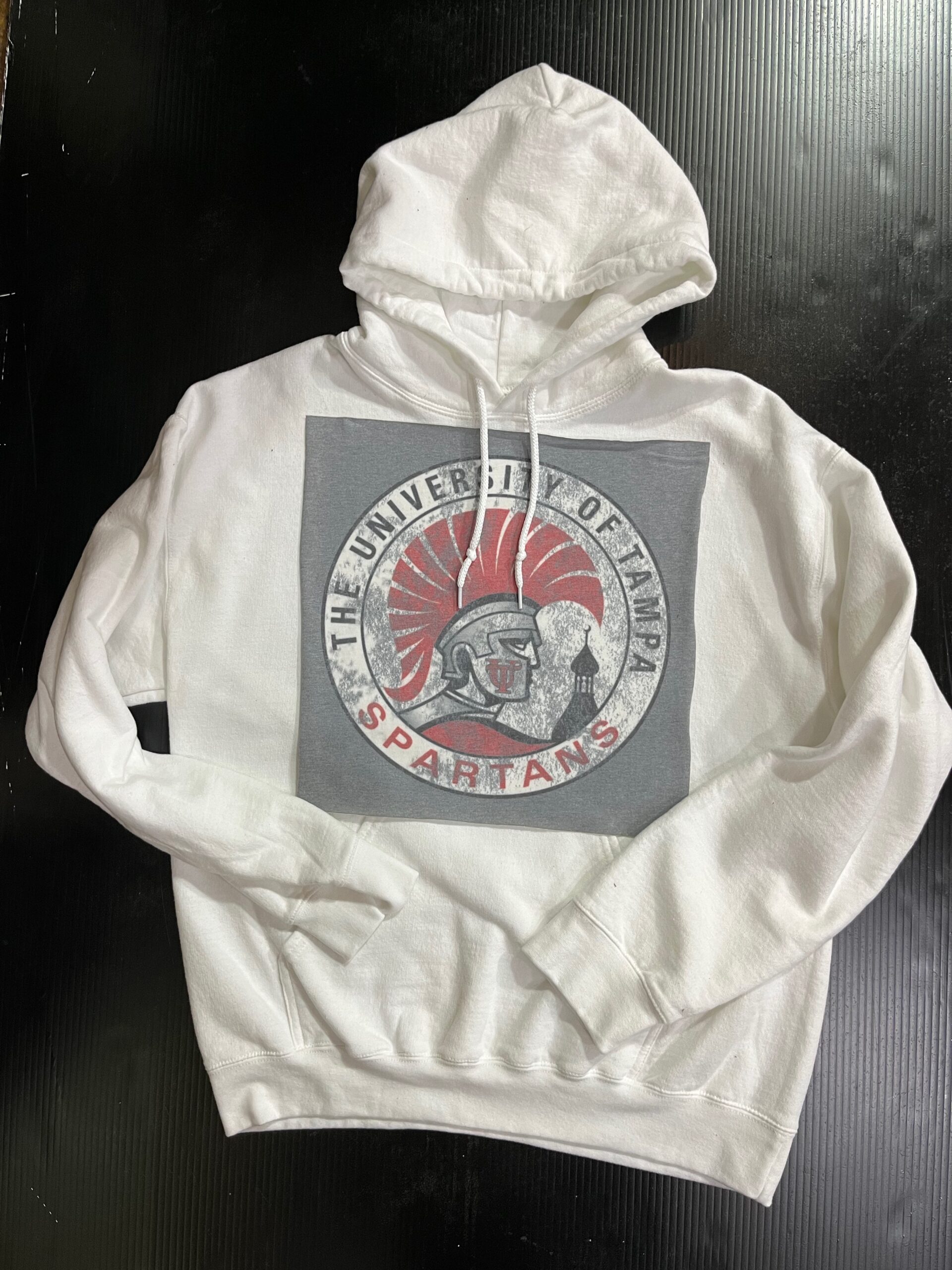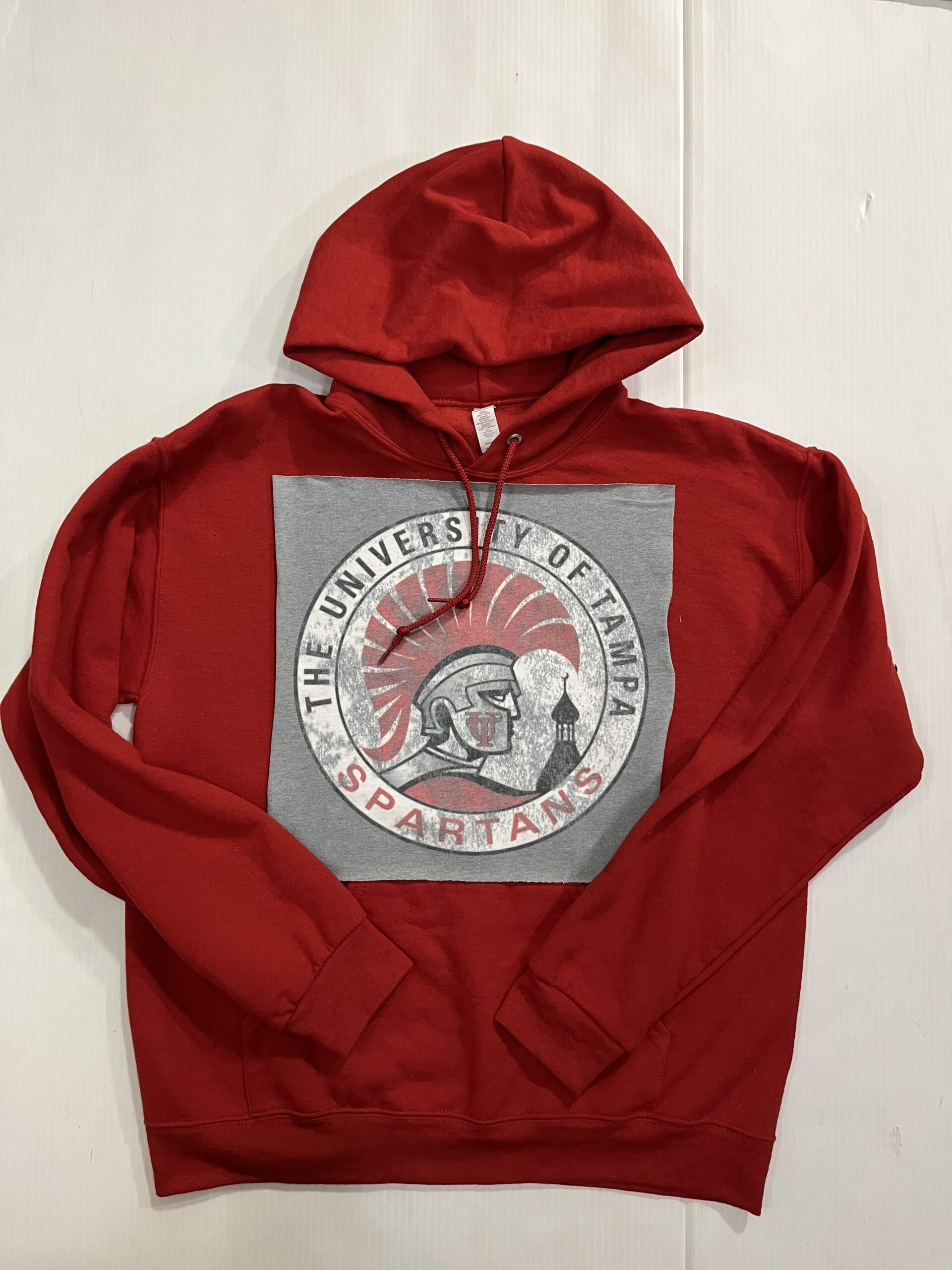 Soft hooded sweatshirt with vintage Tee Square sewn on the front. Banded bottom and kangaroo pocket. 50% cotton/ 50% polyester.