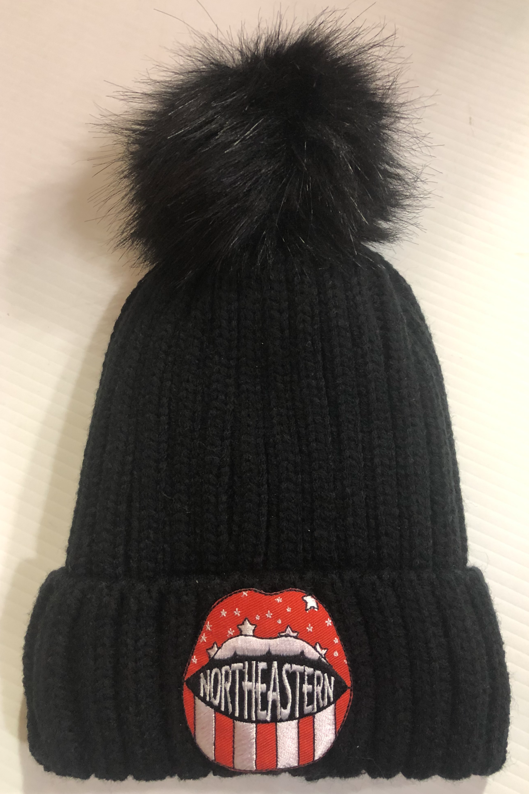 Soft Faux Fur-lined Pom Pom hat with embroidered college logo. 100% Acrylic.