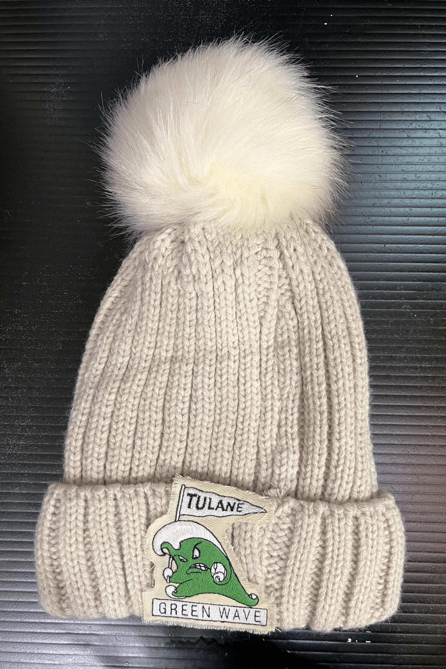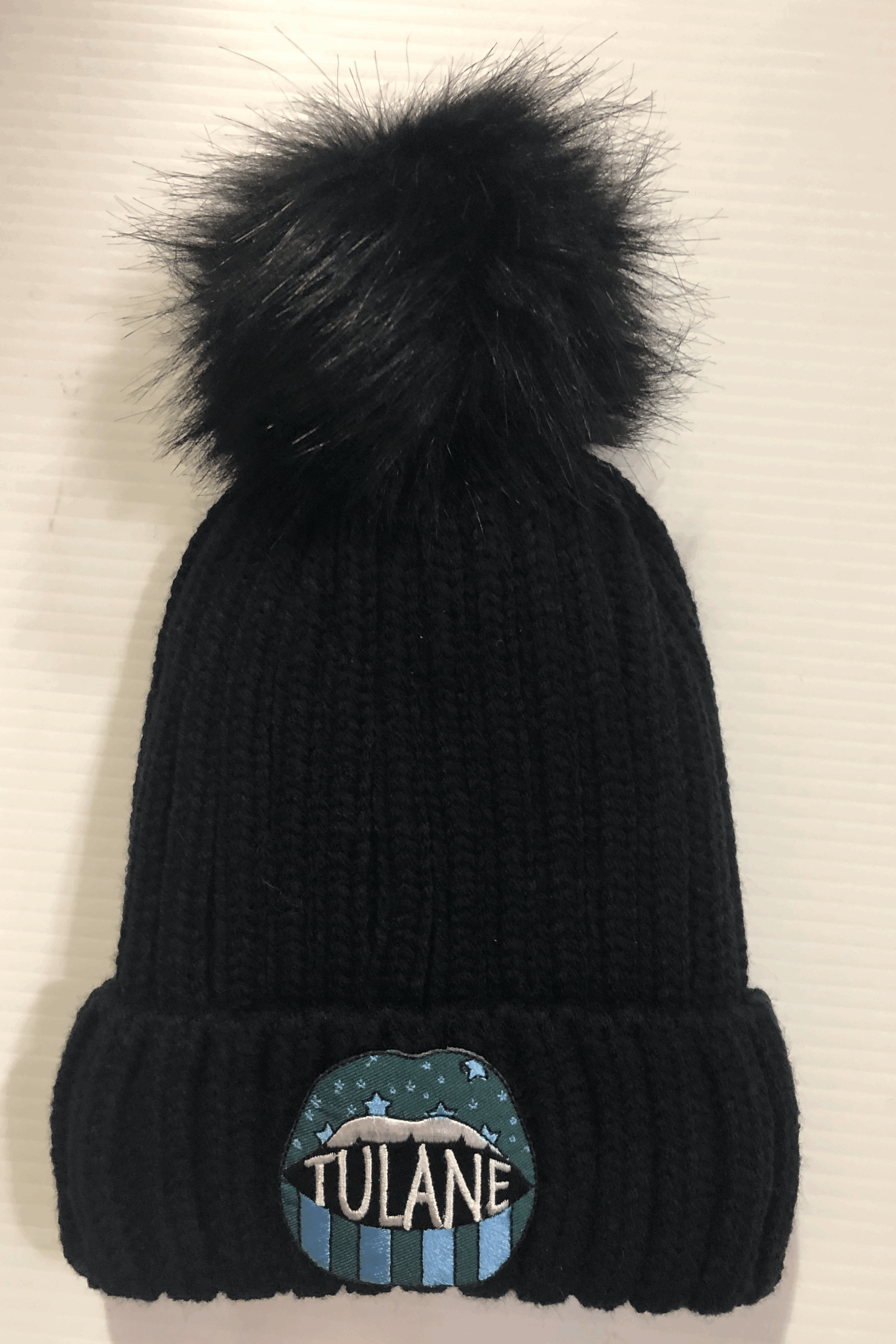 Soft Faux Fur-lined Pom Pom hat with embroidered college logo. 100% Acrylic.