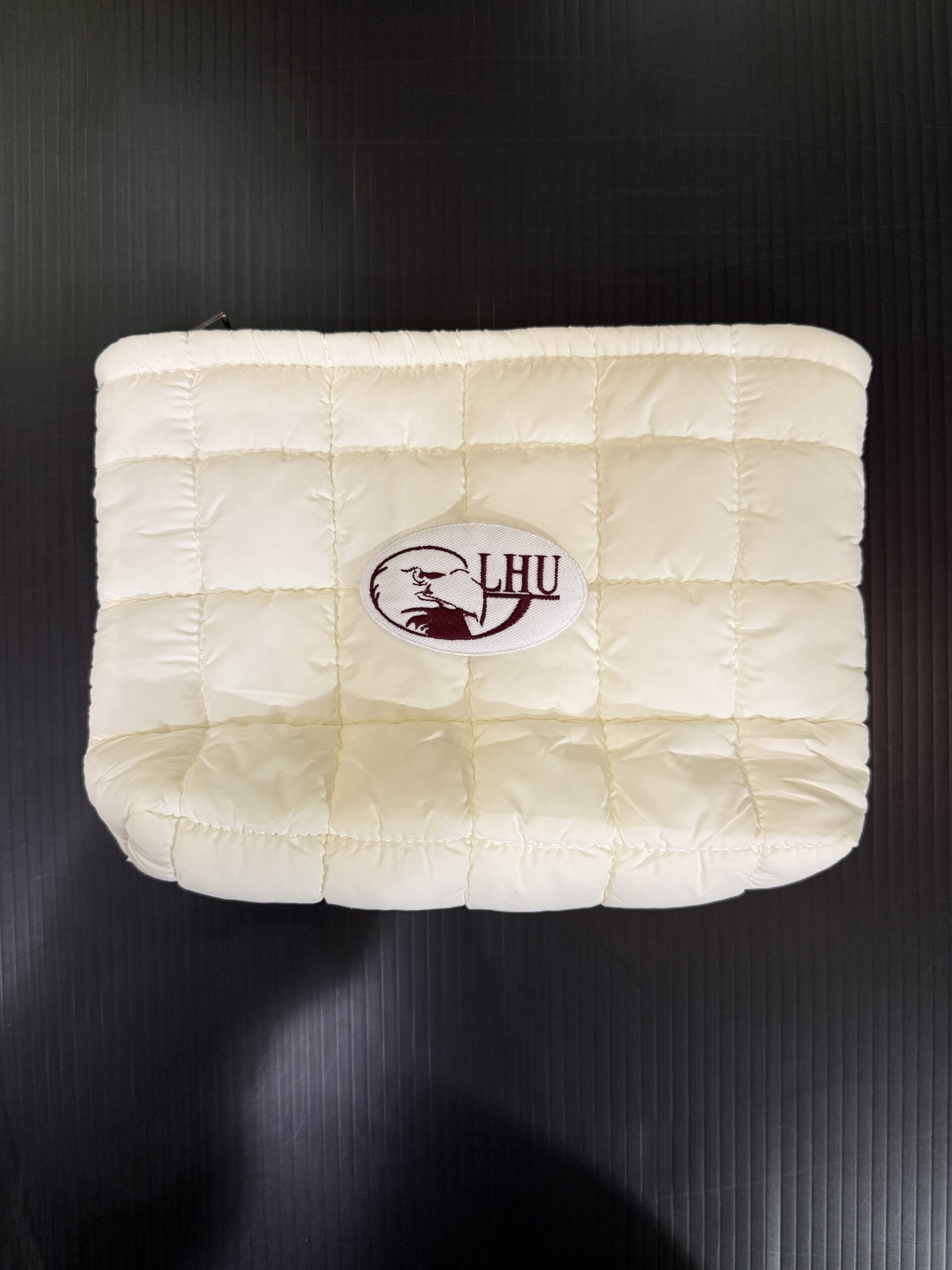 Quilted Puffy Cosmetic/Makeup/ Clutch Bag. This chic accessory features a luxurious quilted design with a puffy texture, providing both elegance and durability. Perfect for storing makeup, toiletries, or other small items, this versatile pouch doubles as a fashionable clutch bag.