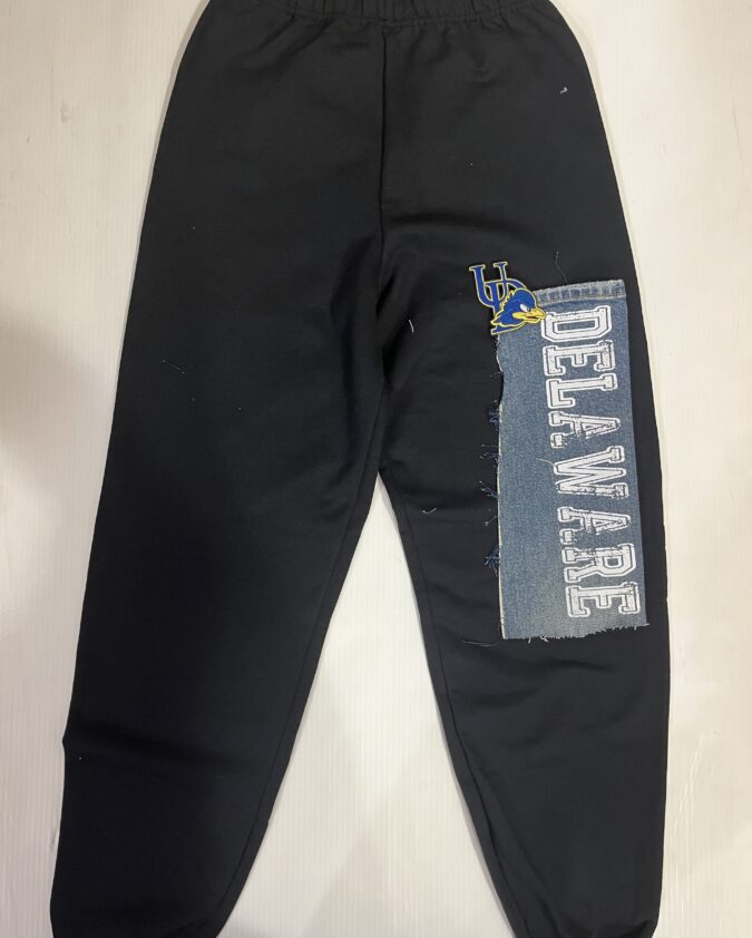 15 inch cropped 1X1 ribbed brami top with University of Delaware logo. 92% Nylon 8% Spandex