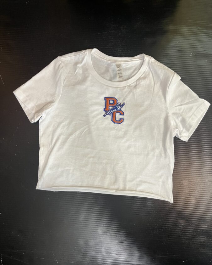 15 inch cropped 1X1 ribbed brami top with the SUNY Purchase logo. 92% Nylon 8% Spandex