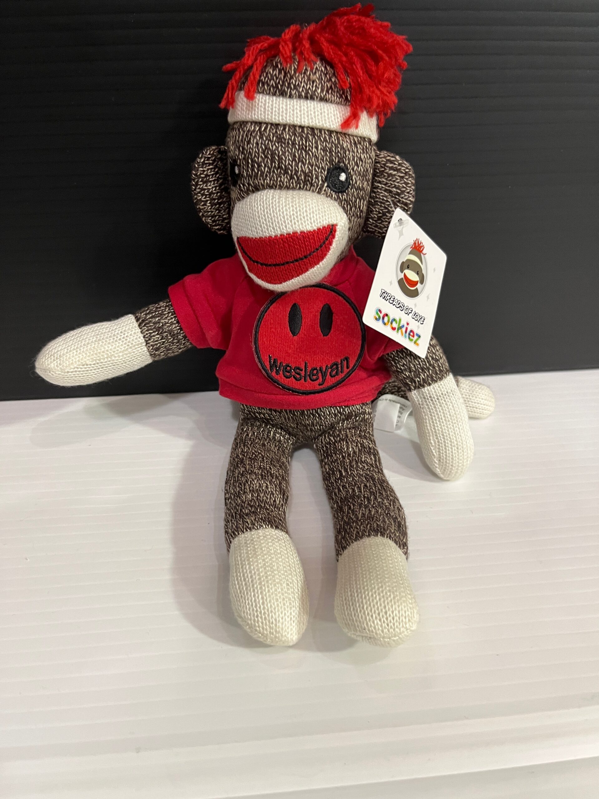 Stuffed 11inch tall Sock Monkey wearing a college Tee