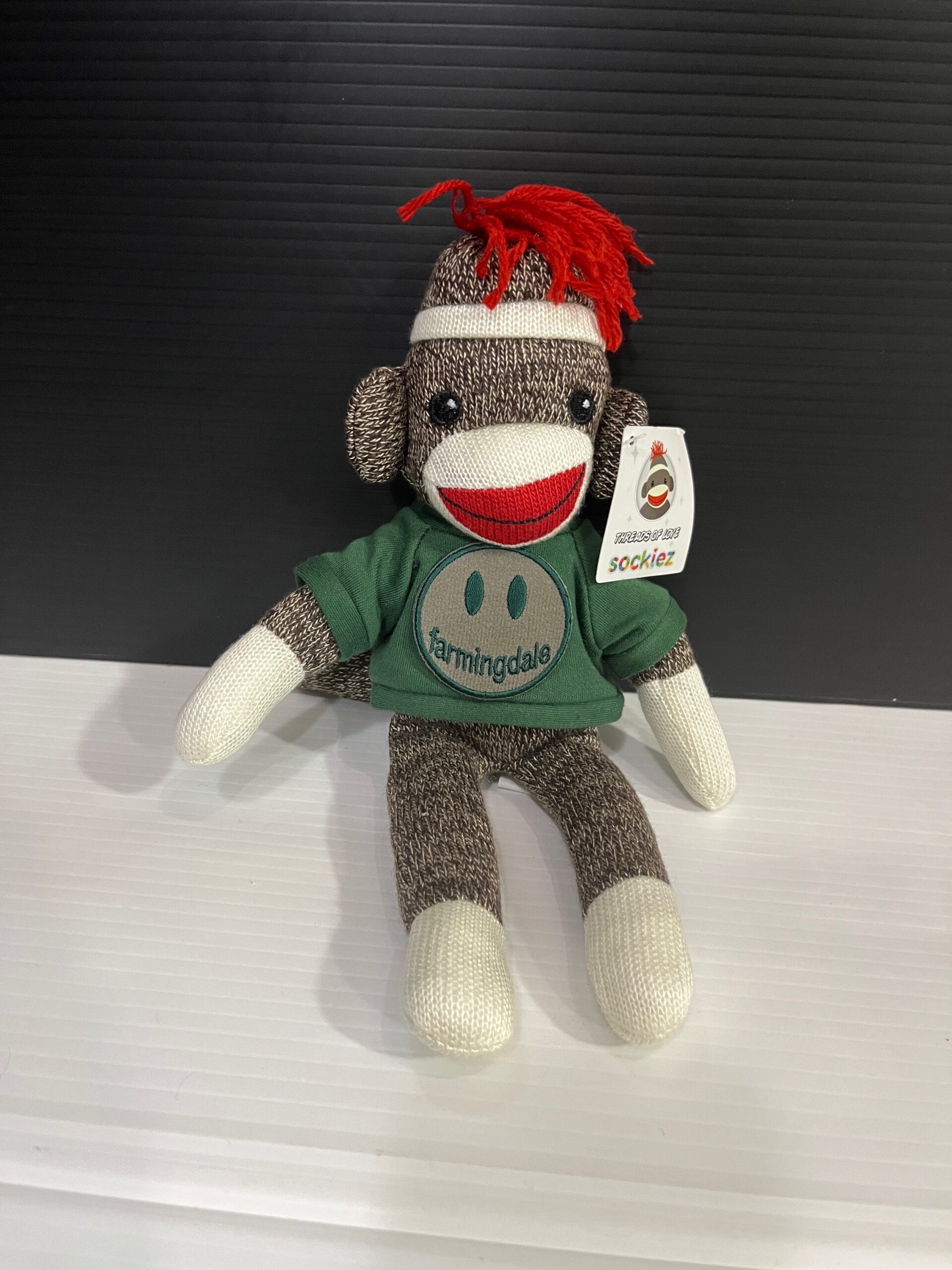 Stuffed 11inch tall Sock Monkey wearing a college Tee