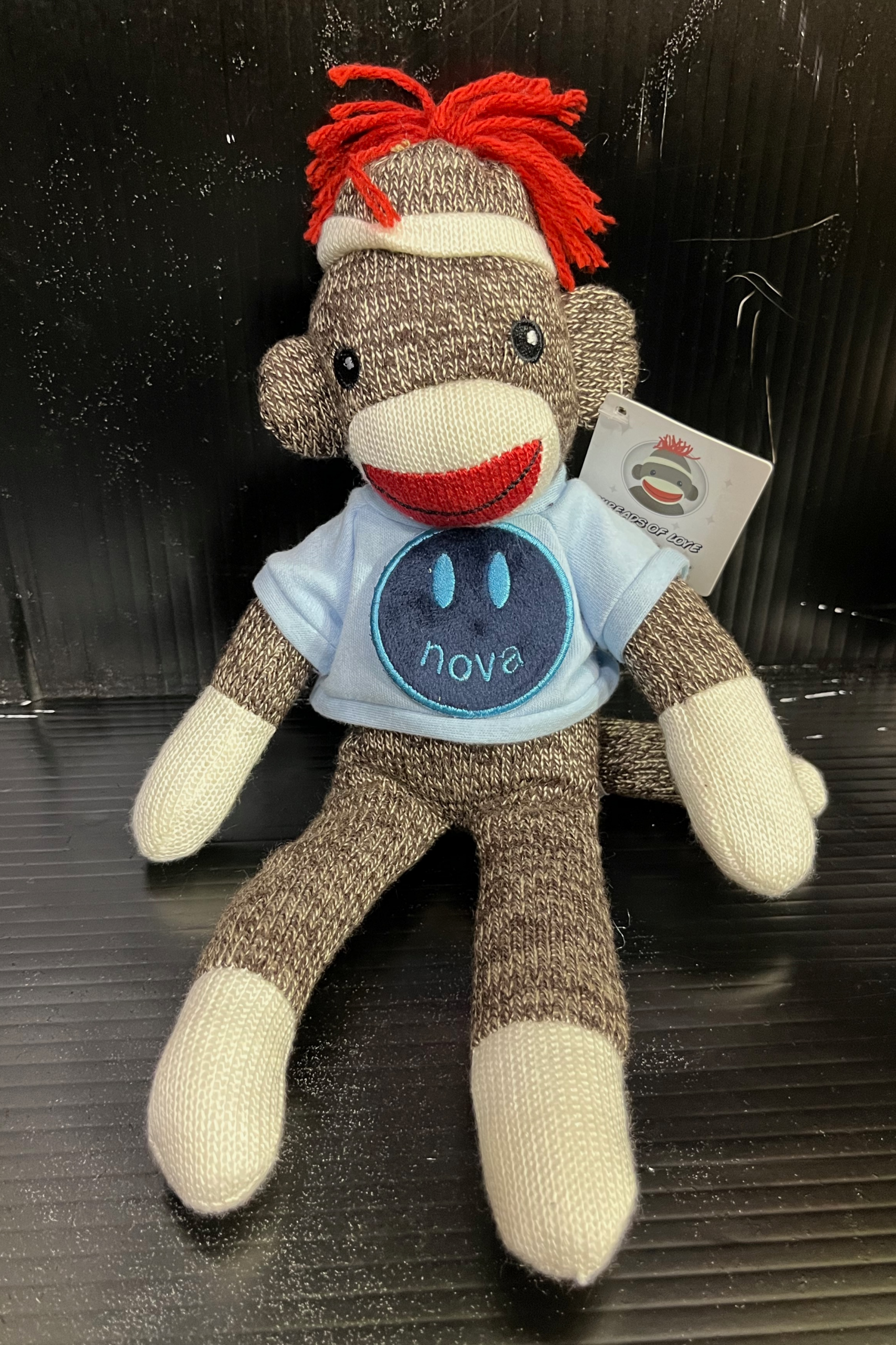 Stuffed 11inch tall Sock Monkey wearing a college Tee