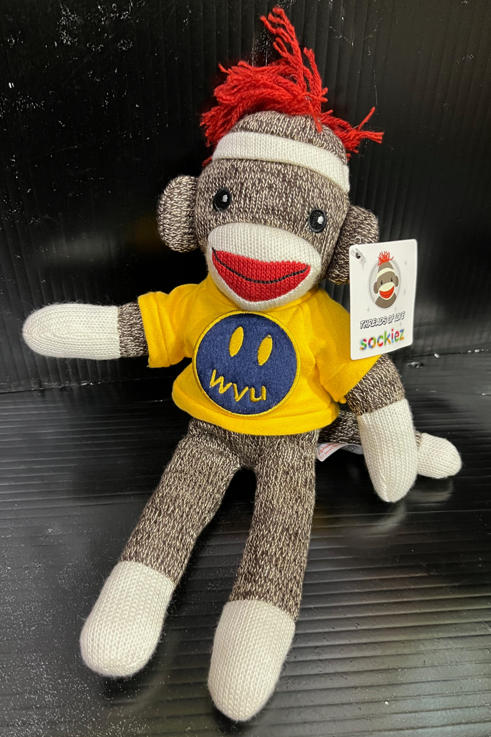 Stuffed 11inch tall Sock Monkey wearing a college Tee