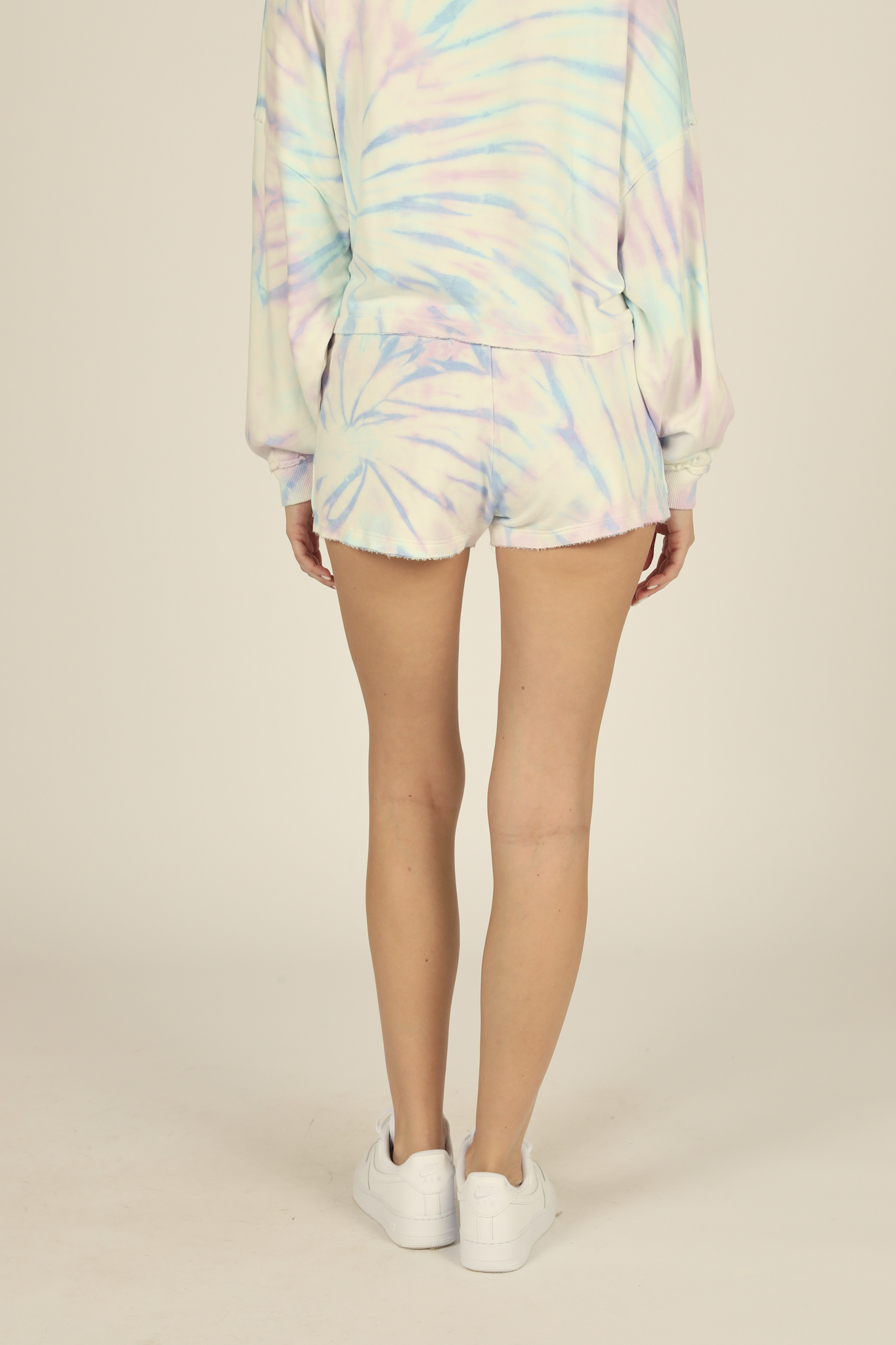 Soft tie dye modal shorts with elastic/drawstring waist.