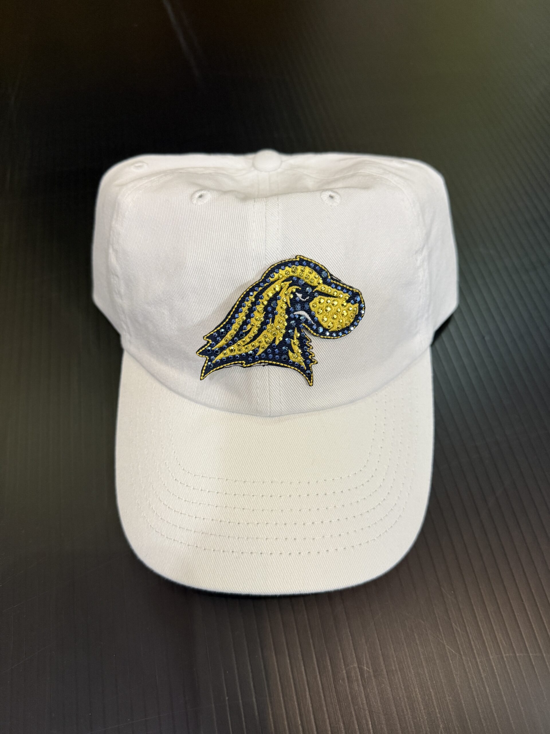 Soft twill baseball hat with bling college logo