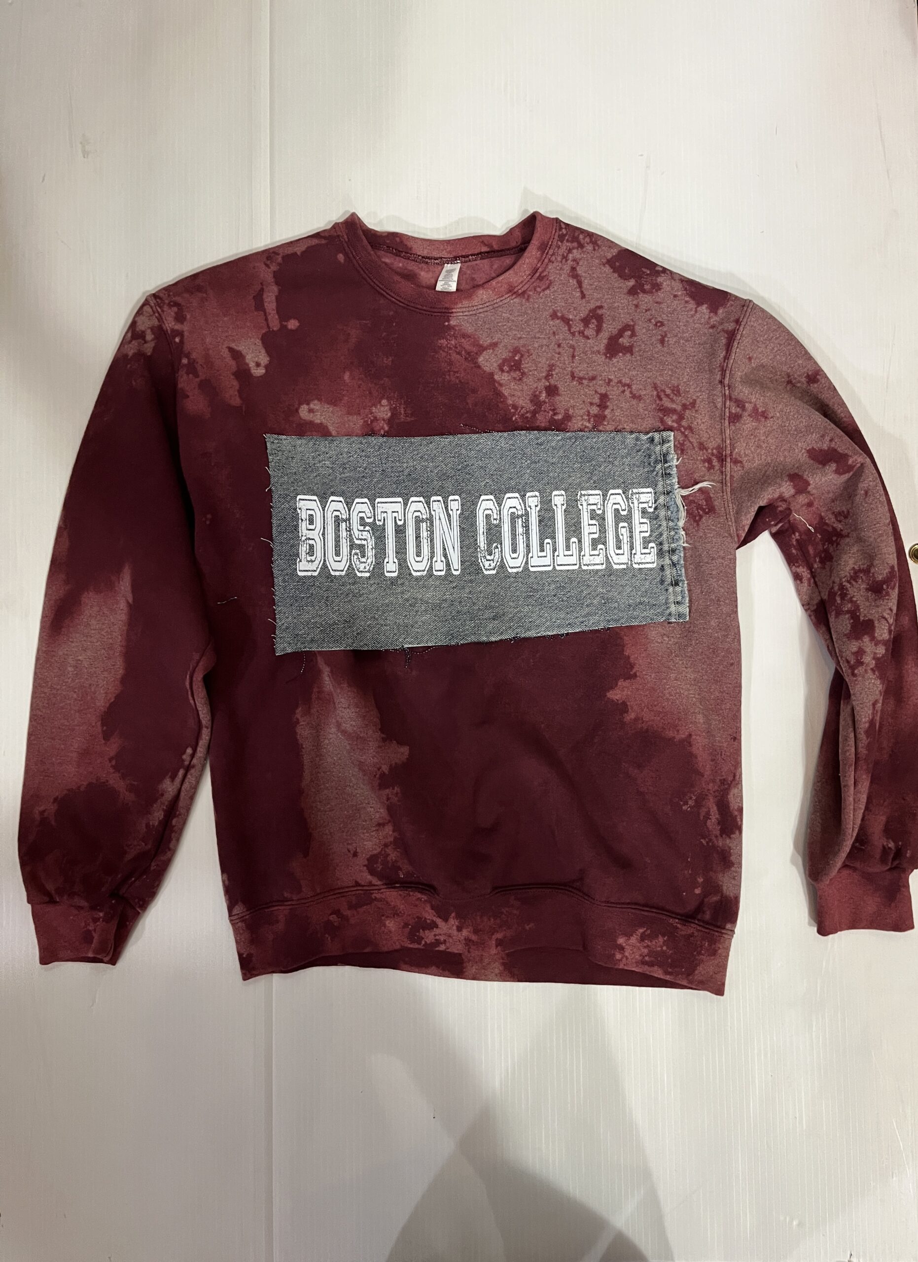 Comfy soft crewneck sweatshirt with vintage denim patch sewn across the chest.