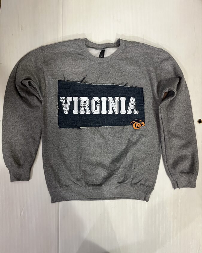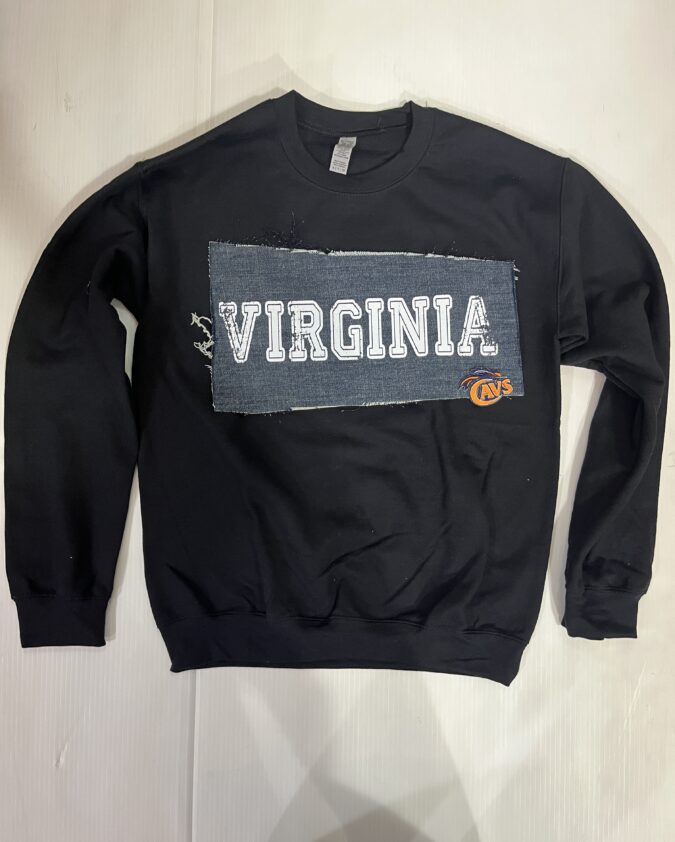 Comfy soft crewneck sweatshirt with vintage denim patch sewn across the chest.