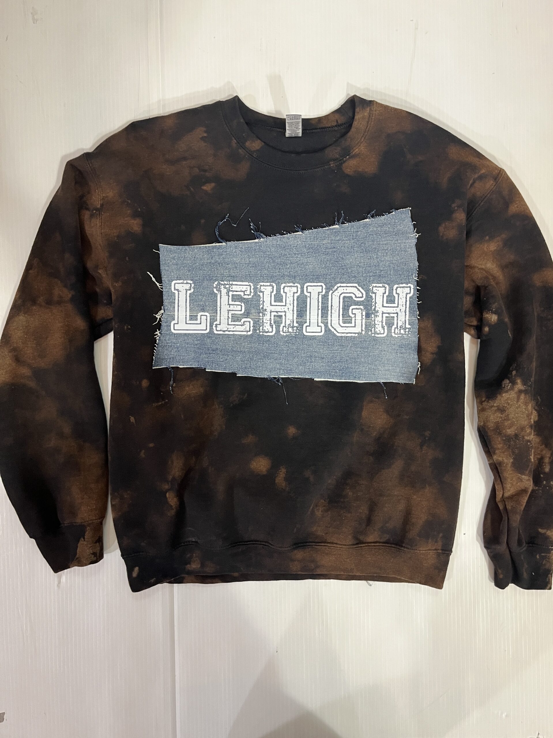 Comfy soft crewneck sweatshirt with vintage denim patch sewn across the chest.