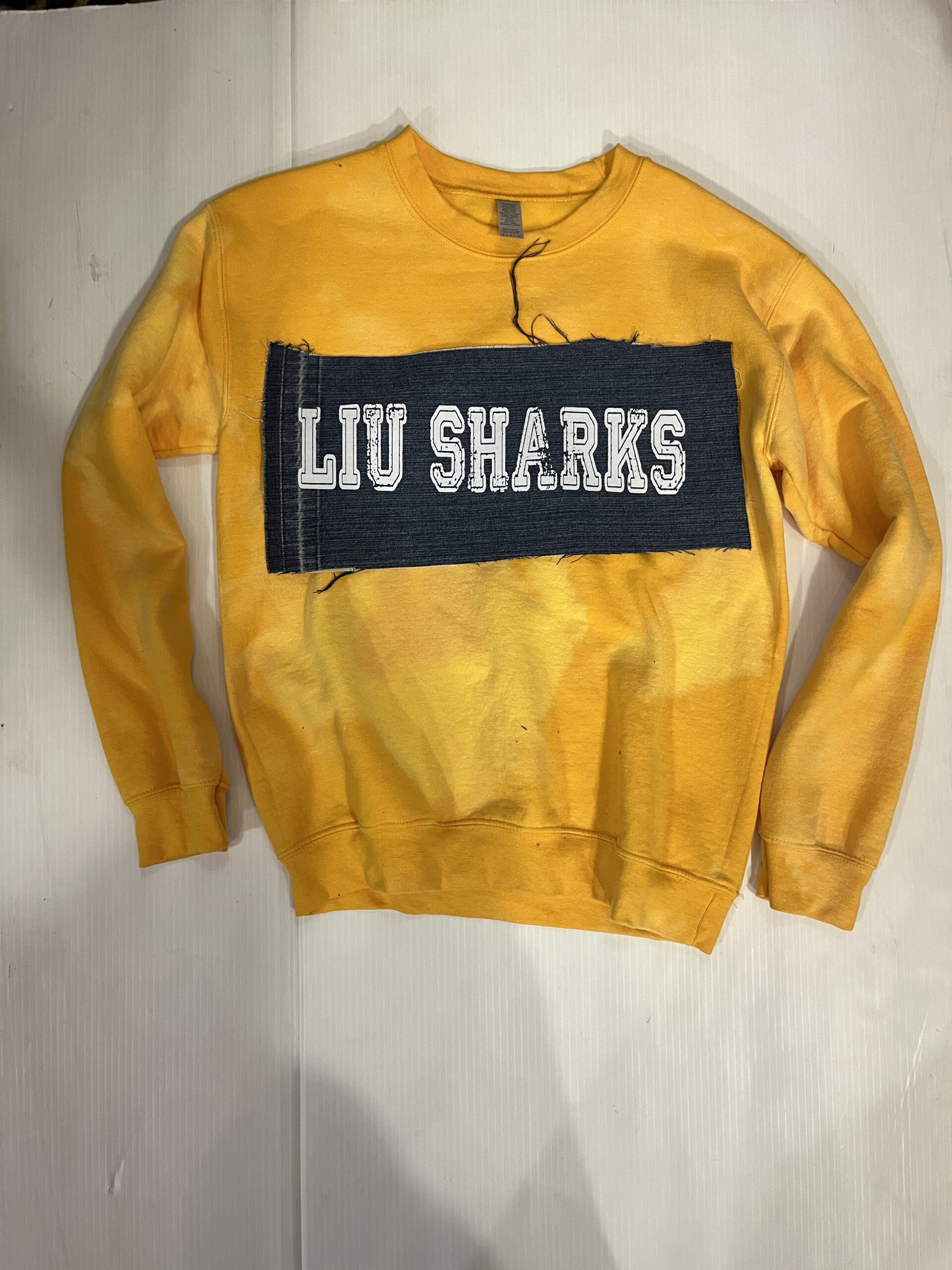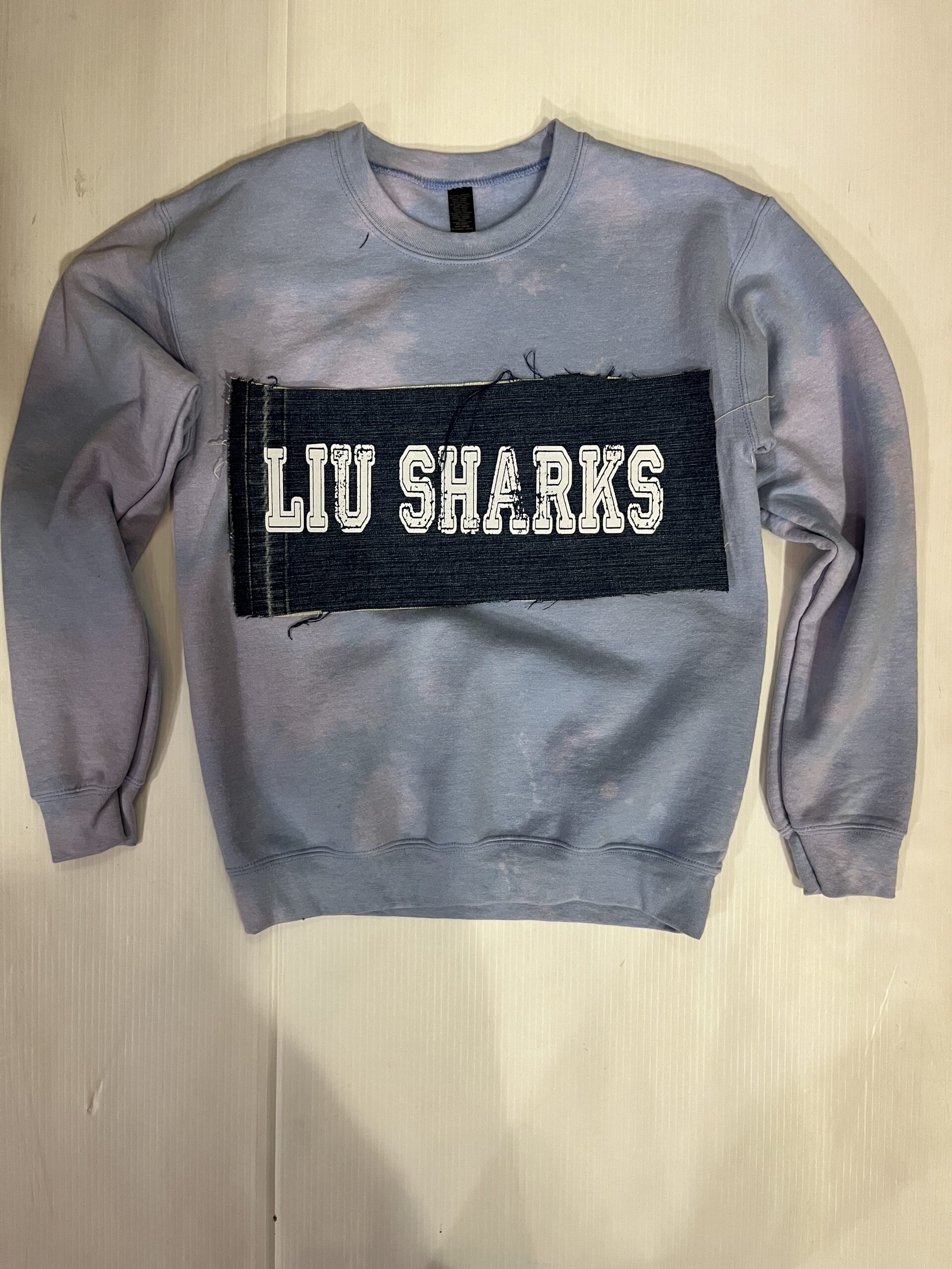 Comfy soft crewneck sweatshirt with vintage denim patch sewn across the chest.