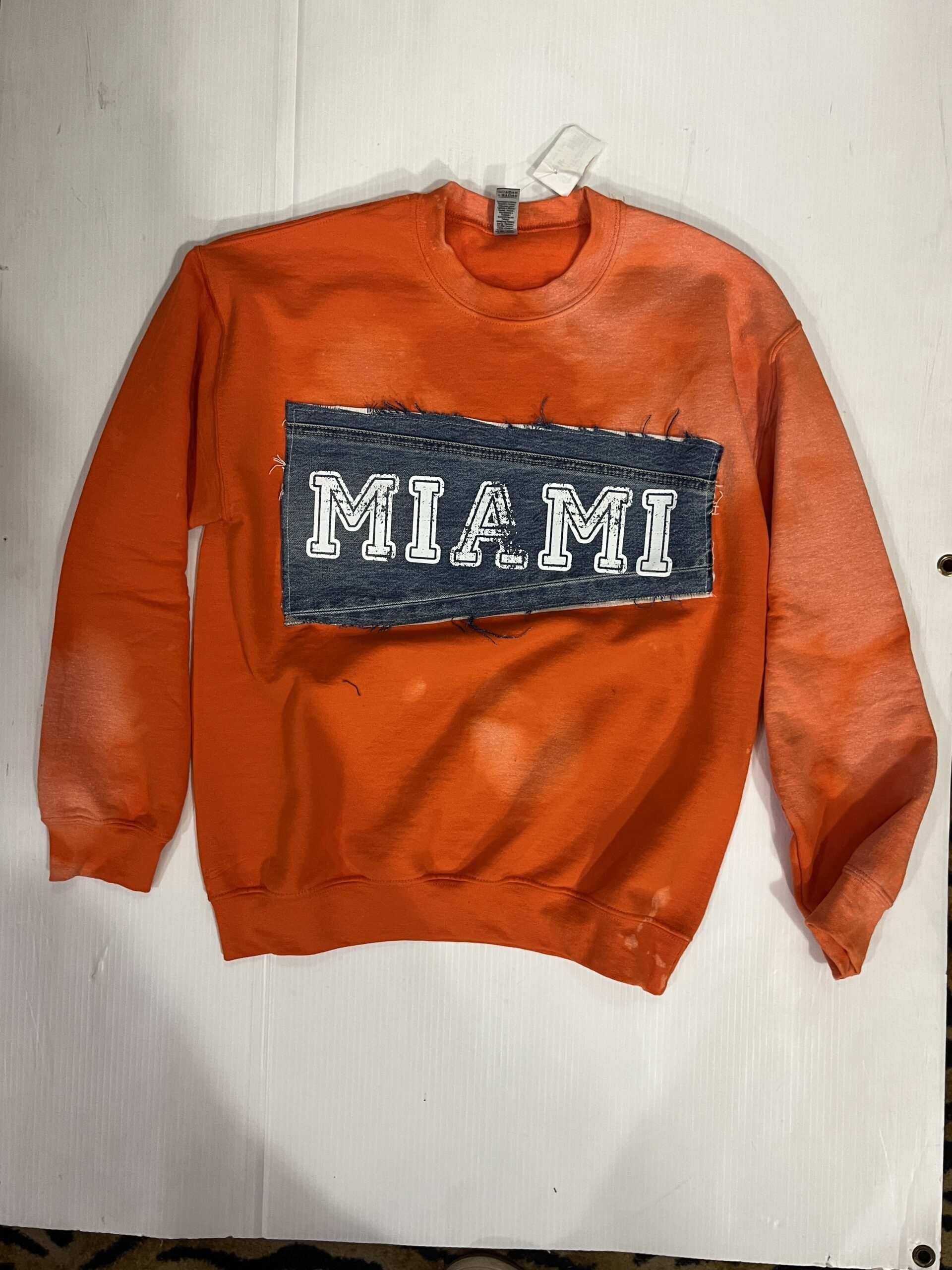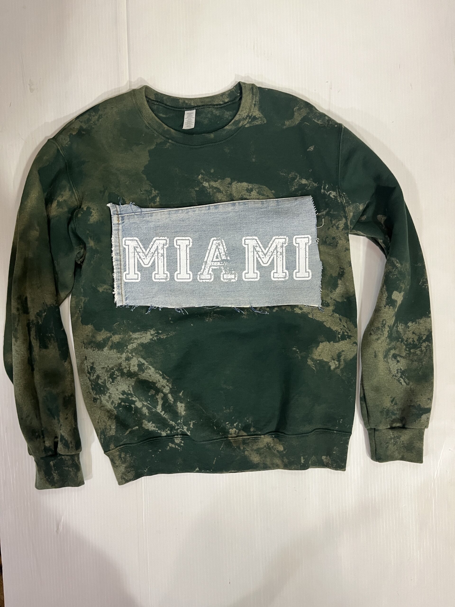 Comfy soft crewneck sweatshirt with vintage denim patch sewn across the chest.