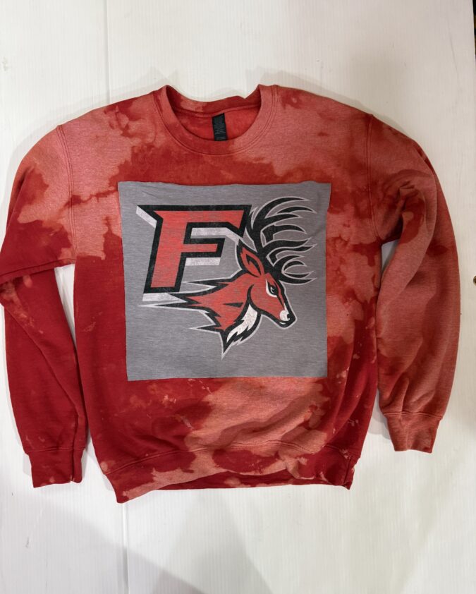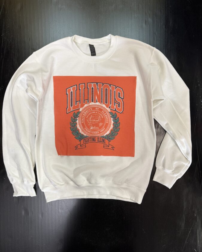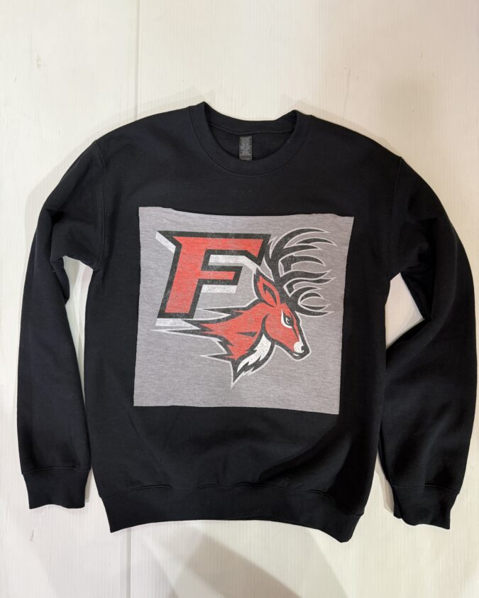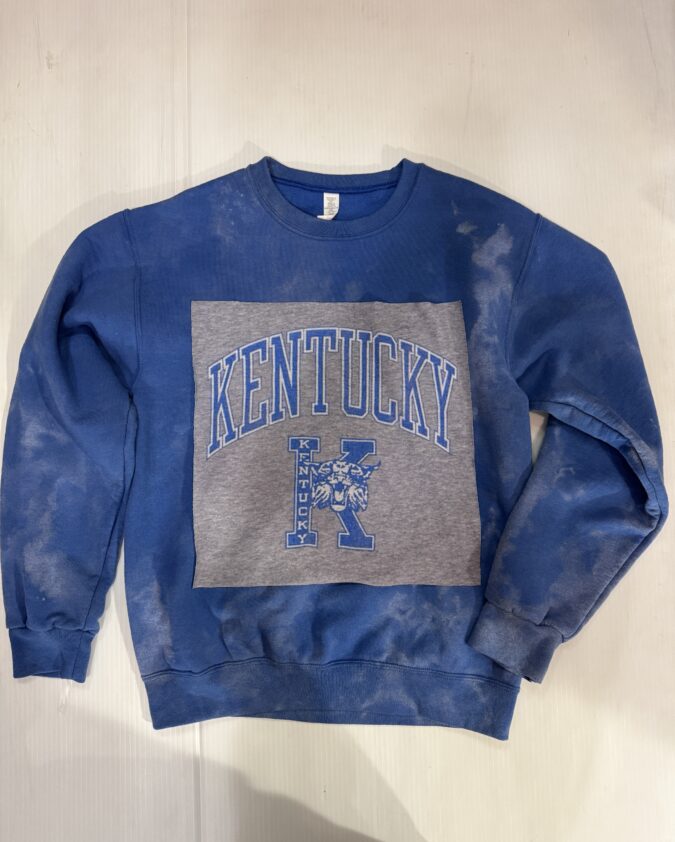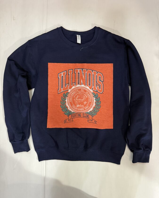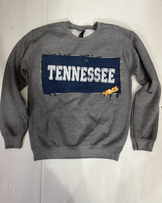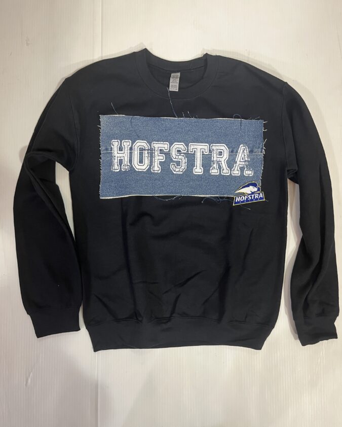 Comfy soft crewneck sweatshirt with vintage denim patch sewn across the chest.