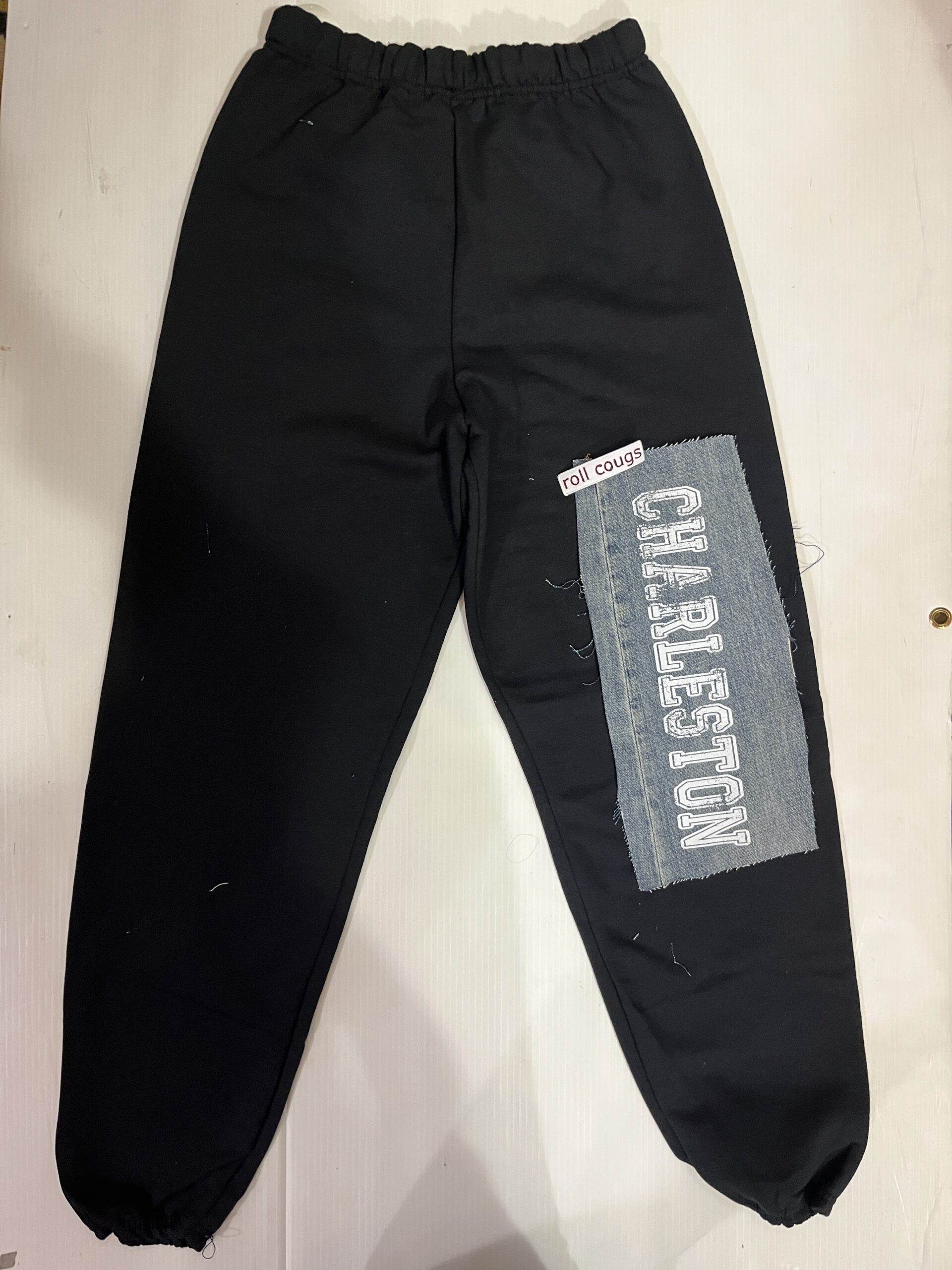 Comfy soft sweatpant with vintage denim patch sewn on the leg and embroidered college logo patch. Old School baggy fit.