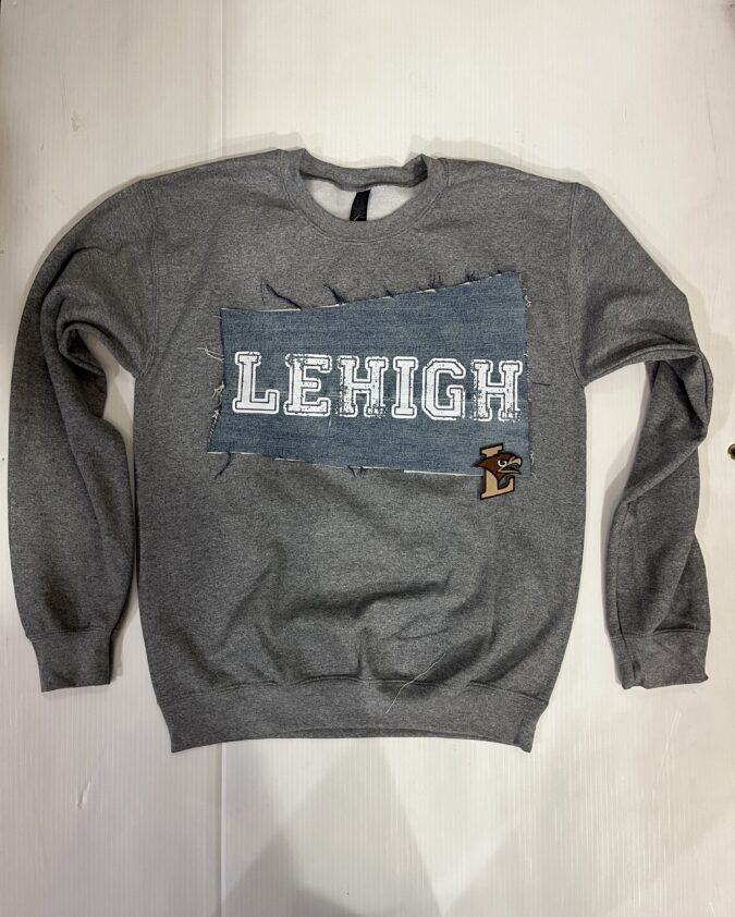 Comfy soft sweatpant with vintage denim patch sewn on the leg and embroidered college logo patch. Old School baggy fit.